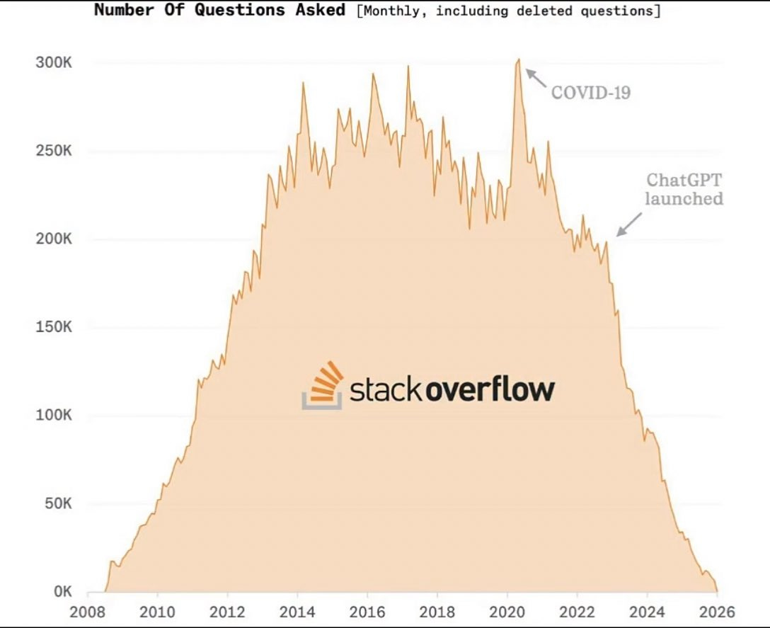 Last year was the “year of agents” and promised that those pesky people you work with would be replaced. While this led to a lot of firings and rehirings, the outcomes did reflect the abilities in coding. An agent was about as good as an intern: simpler code worked now, but at a certain level of complexity it totally fell apart. Just like the SO headshot, this began to replace the corresponding structure of interns and junior devs. College grad engineer hiring dropped 20% from 2022 highs and internship postings dropped 30% from 2023. The pendulum might, and hopefully will, swing back on this, since missing a generation of engineer growth would be awful. But as it stands, the kids are not very alright.